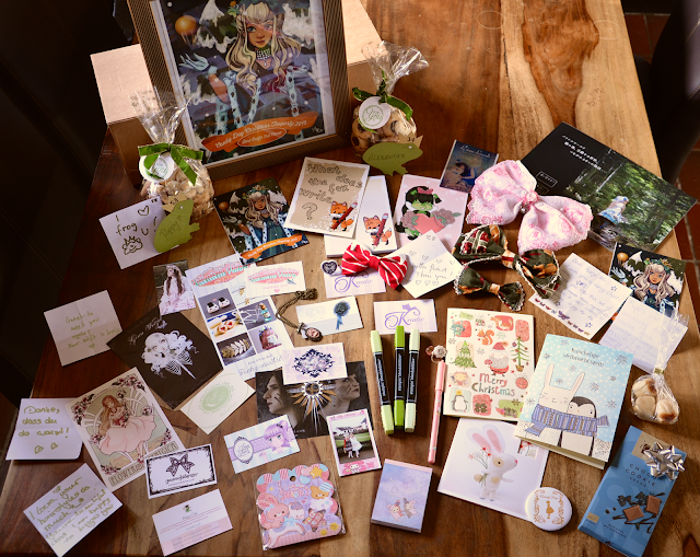 Some more time passed by, more pictures where made and it was time to reveal the winners of the outfit contest. Too my biggest surprise we ended in third place! I still getting used to it but I'm so thankful that people liked our coord so much that they wanted to vote for us. Hoa handed over the price and I was so surprised when she held a frame in front of her. Inside was the artwork of this year made by Meri, her work is amazing and I couldn't believe that I won a print of her work. I'm a big fan of original artwork so getting this was the cherry on my pie. The rest of the price was super adorable as well, we won some cute stationary, a small bow, ring and a photobook.